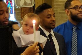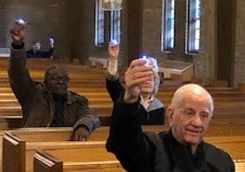 Parishioners of Our Lady of Good Counsel Parish make a promise to share their light and invite others to church.